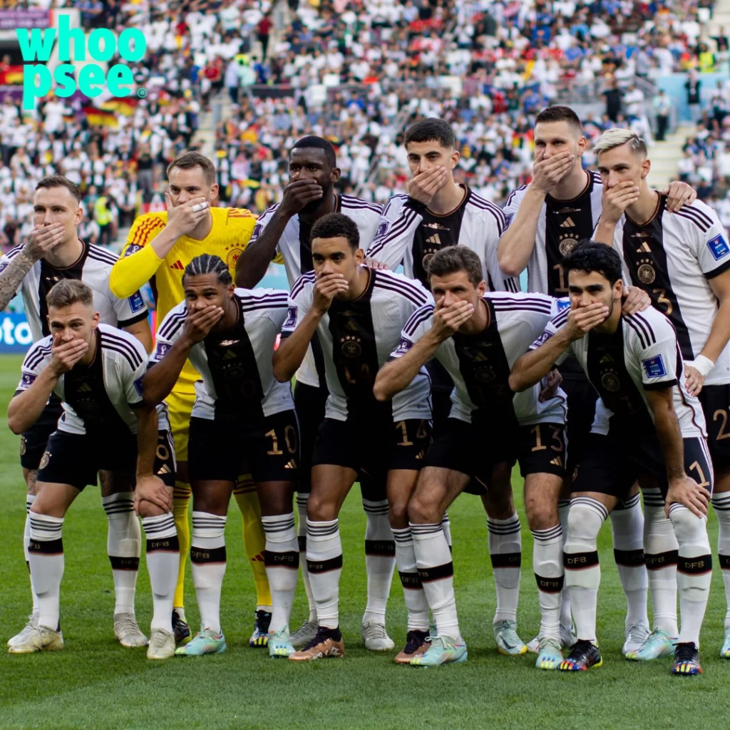 Parliamo di alcune squadre europee, che pur di rintuzzare i Qatarioti sono scesi in campo con la fascia LGBT e per i diritti umani, come nel caso dei tedeschi, si sono tappati la bocca per i diritti umani.