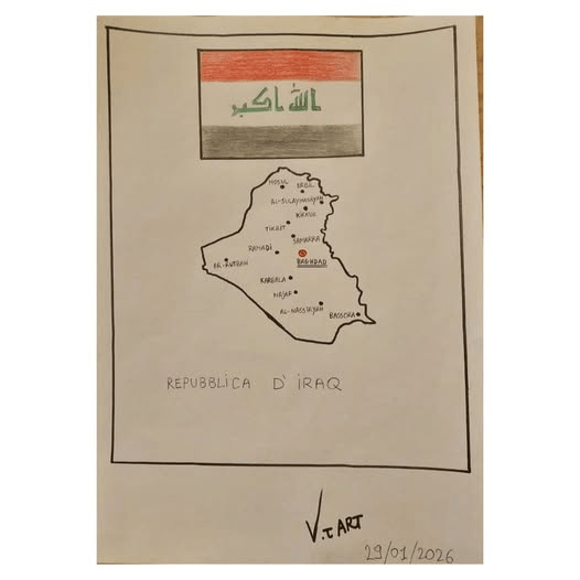 Il disegno ad inizio articolo, fatto da me, raffigura la mappa dell’Iraq.